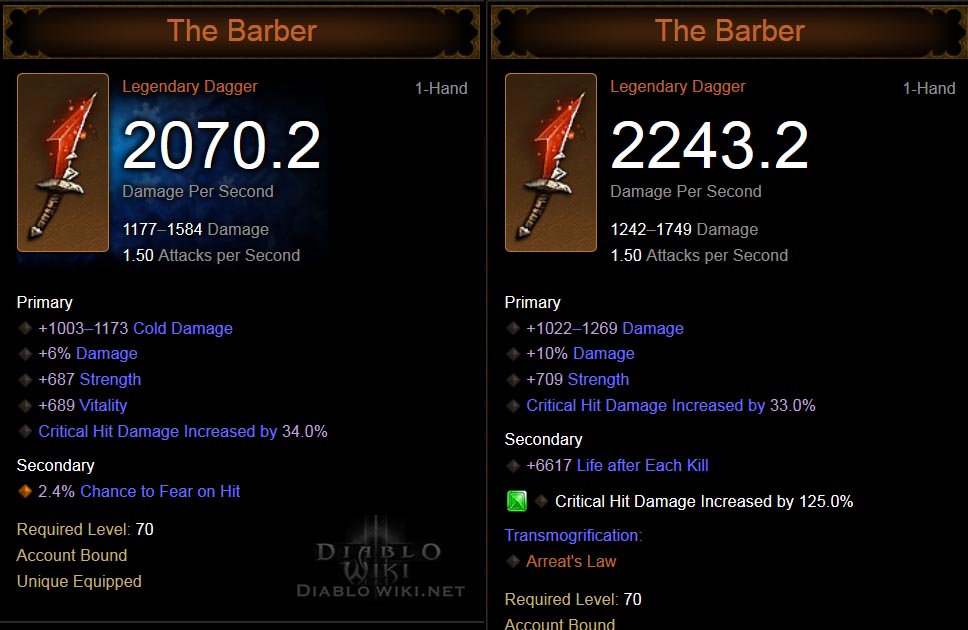 The Barber, a legendary dagger.