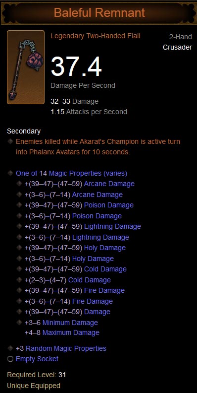 09:50, 17 August 2014 Baleful-remnant-icon.jpg (file) 13 KB Baleful Remnant, a legendary two-handed flail. category: Weapons category: Legendary Flails category: Flails 1