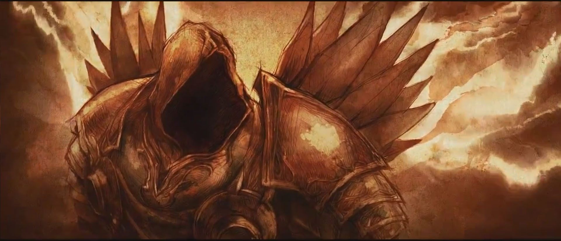Scene from the Diablo III Introduction cinematic, shows a closeup of Tyrael's non-face.