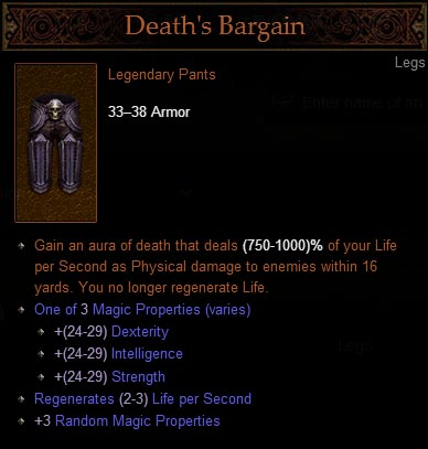 Revision as of 21:43, 21 June 2014 by Flux (talk | contribs) (The Death's Bargain, legendary pants. category:legendary category:legendary Pants category:shoulders)
