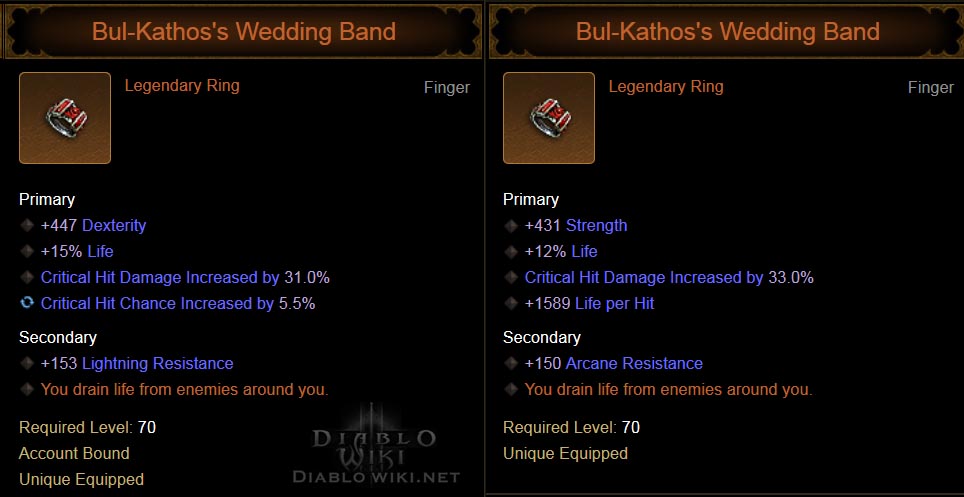 Revision as of 00:54, 29 June 2014 by Flux (talk | contribs) (Bul Kathos's Wedding Band is a legendary ring. category:legendary category:Legendary Rings category:Rings)