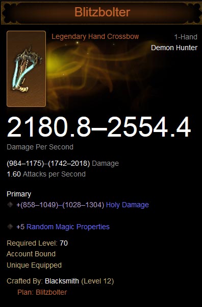 Blitzbolter is a crafted legendary hand crossbow.