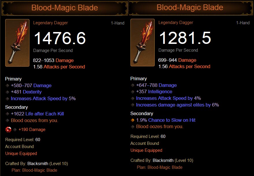 Blood-Magic Blade, a crafted legendary dagger.
