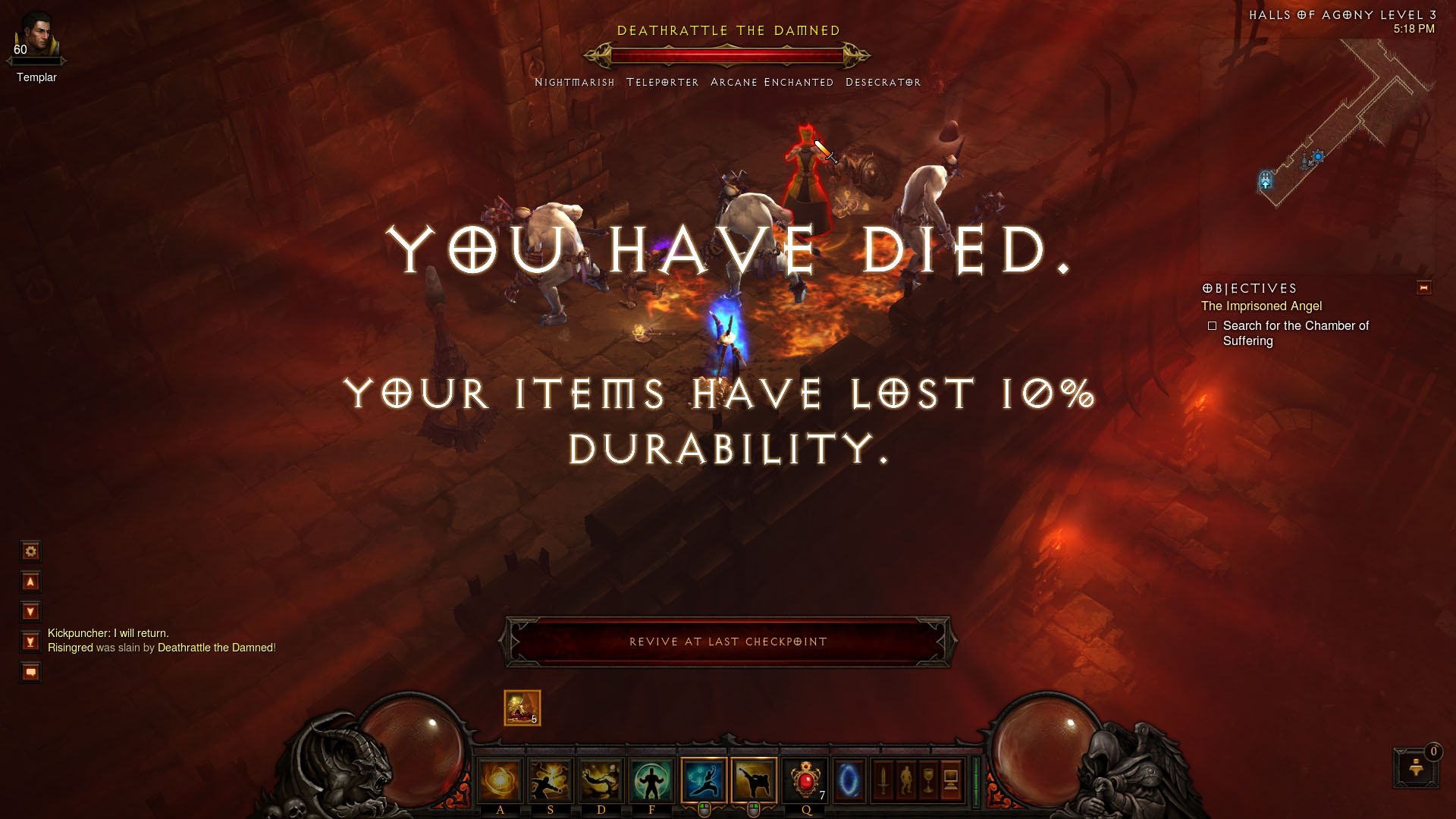 Two elite packs spawning in the same area in Inferno difficulty, and the frustratingly familiar screen of death.