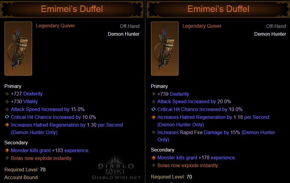 Emimei's Duffel is a legendary quiver. Demon Hunter only.