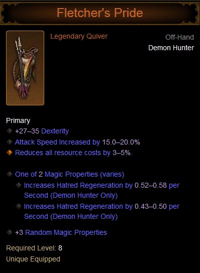 Fletcher's Price is a legendary quiver. Demon Hunter only.