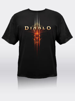 The first Diablo III T-shirts from Blizzard, with Diablo's head and the game logo. This is the male version of the shirt.