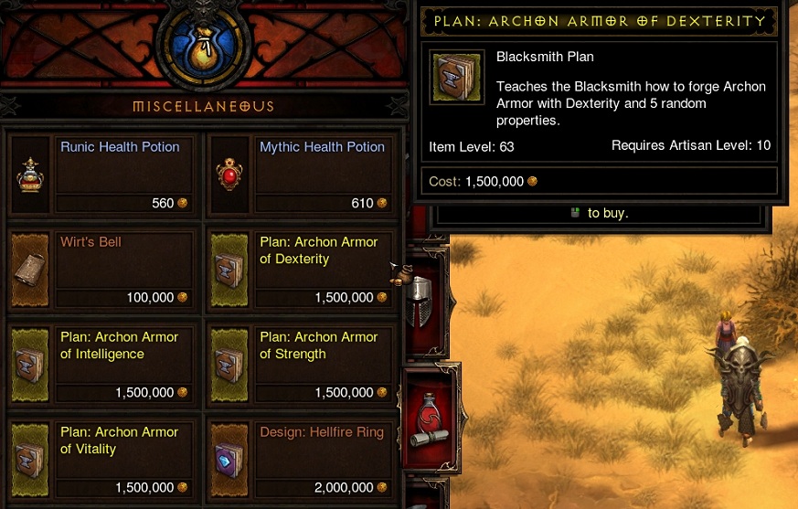 The Plans to create four types of Archon Armor, purchasable from Squirt in v1.07. Image taken from the PTR during testing, and subject to change in the final implementation.