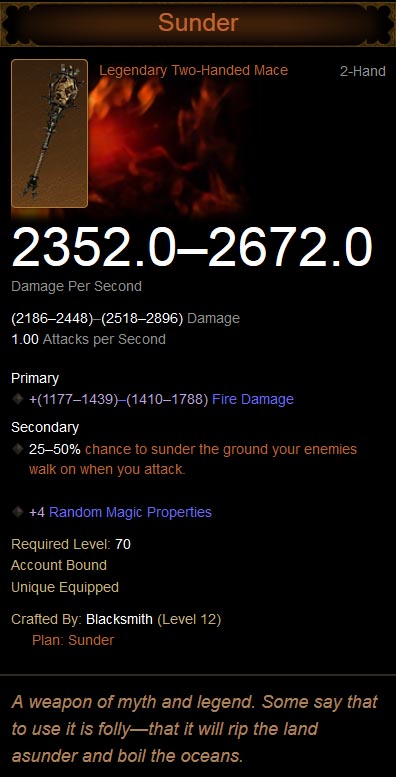 Sunder is a crafted legendary staff.